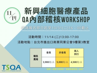 112年度「新興細胞醫療產品 QA內部稽核workshop」-收費課程課程編號:112-TF-GTP-9112年度「新興細胞醫療產品 QA內部稽核workshop」-收費課程上課日期:2023-11-14講師:已截止 -